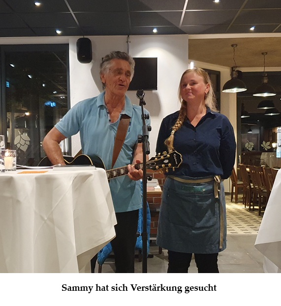 Musikalische Unterstützung erhielt er von seinem Musiker Sammy, der selbst Qualitäten eines Entertainers hat und mit umfassendem Repertoire und tollem Gesang im gleichen Maße zur guten Stimmung beitrug.