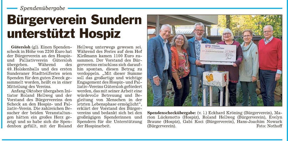 Unser Verein hat beim Holskenball (24.u. 25. August) auf Anregung von Roland Hellweg für diesen Zweck Geld unter den Besuchern gesammelt.
